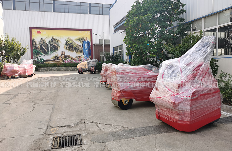 12月10日,福瑞得4臺手扶單輪壓路機,1臺座駕雙鋼輪壓路機打包發往蕪湖市。福瑞得機械生產的小型壓路機,性能優越,動力強勁,作業半徑小,主要用于溝渠基礎、道路、體育場地的壓實整平和壓實瀝青表面的作業。