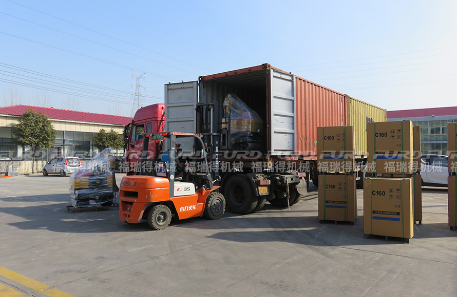 福瑞得機(jī)械一批壓路機(jī)和平板夯打包裝柜發(fā)往埃塞俄比亞