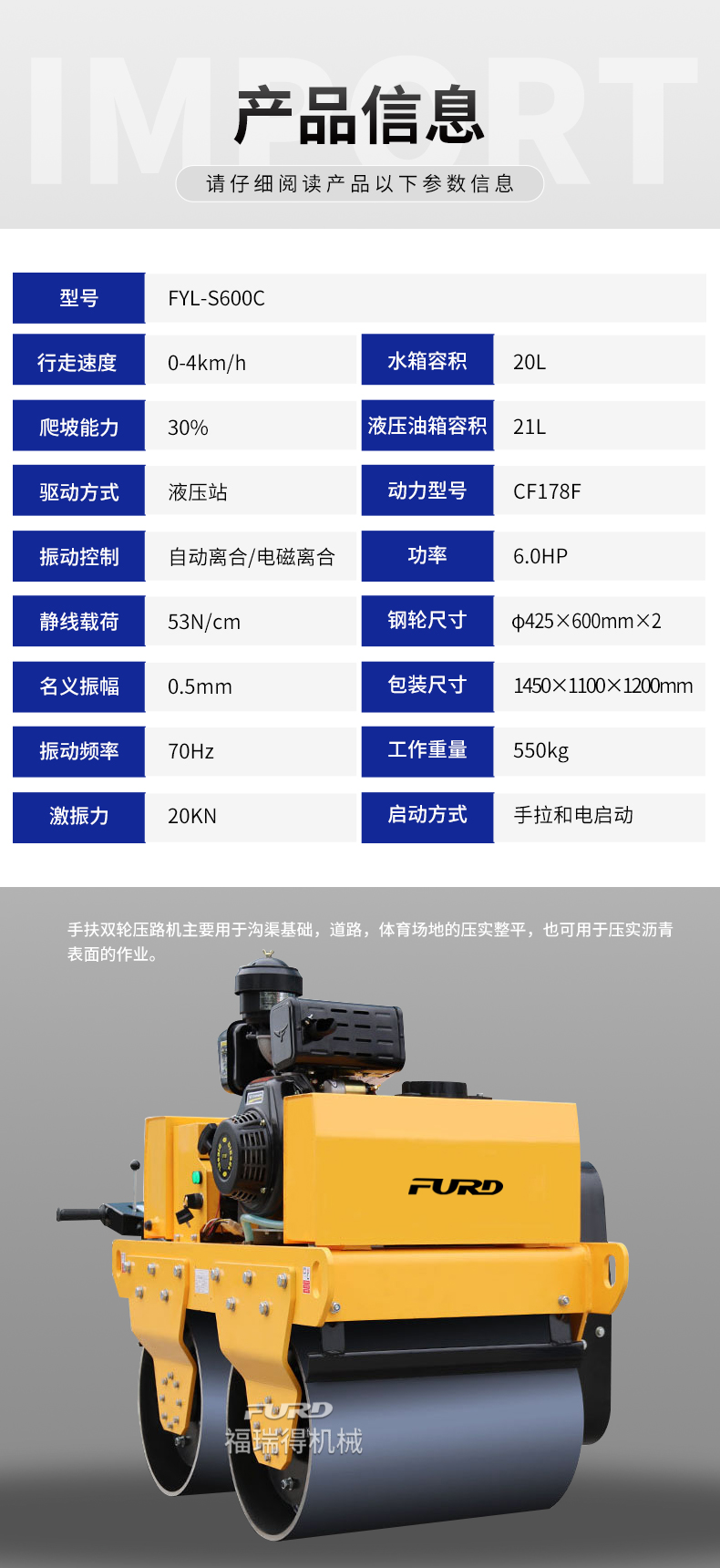 FYL-S600C手扶雙輪壓路機