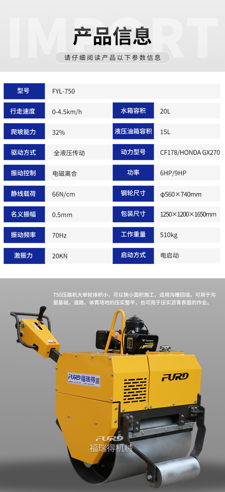 FYL-750  液壓手扶式單輪壓路機
