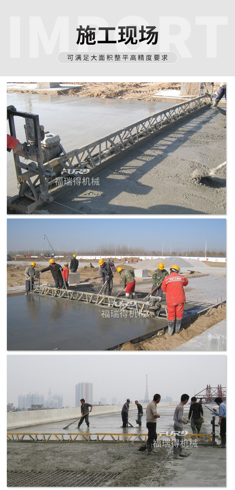 用于混凝土地面的提漿、壓實、整平、是修建公路、車間、廣場、現代化廠房的新型設備。是傳統攤鋪機的升級換代產品,汽油機動力及電動機可任意選擇。