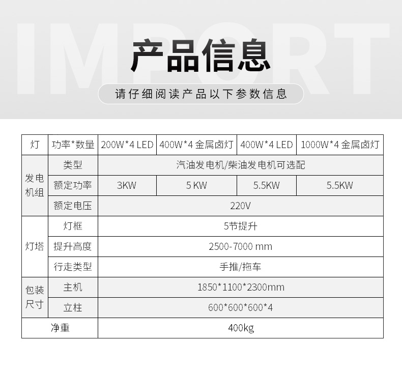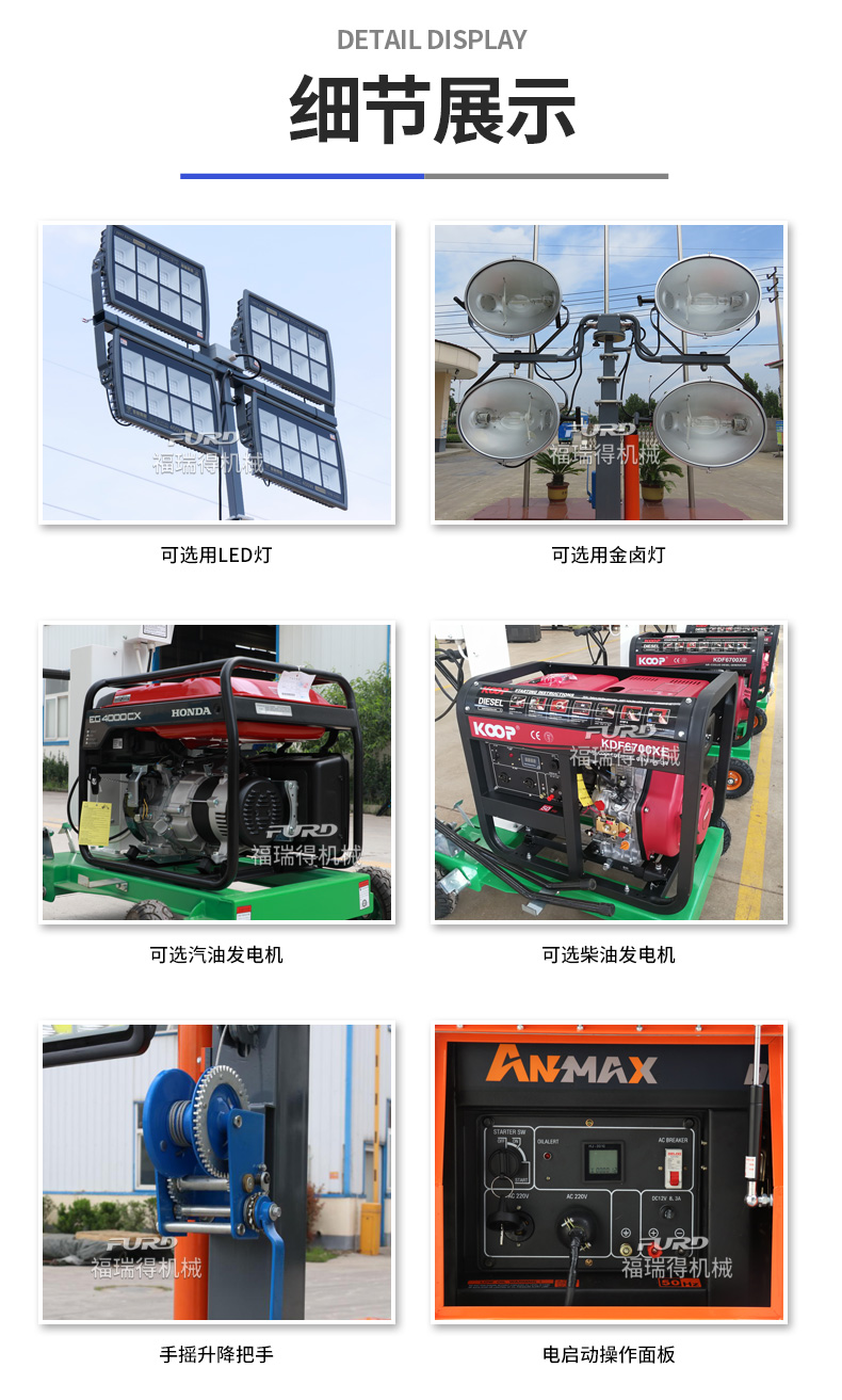 用于體育場館、機場、碼頭等大型公共場所,公路、鐵路、電力等緊急搶險現(xiàn)場,露天采礦現(xiàn)場,以及防洪防汛、搶險救災(zāi)現(xiàn)場等其他需要緊急備用光源、電源的場合。