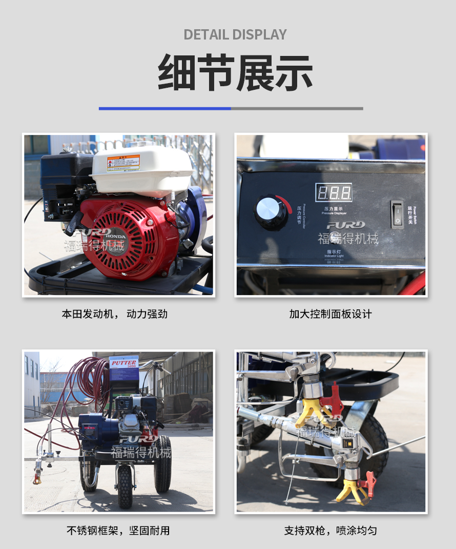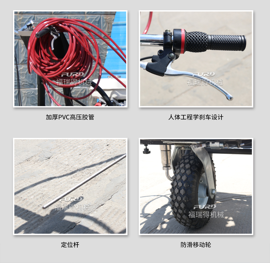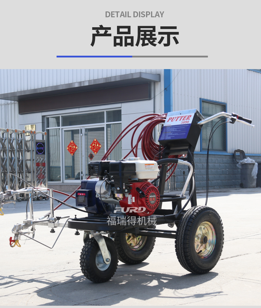 小型手推式道路劃線機是一種在道路、停車場、廣場和跑道等平整地面上劃出不同約束、指引和警示等規則限制標志的路面施工機械。最常見的就是在馬路上劃斑馬線,在路上劃車庫線、停車線等等應用于小型工程、短途施工,活動方便,靈活操作。