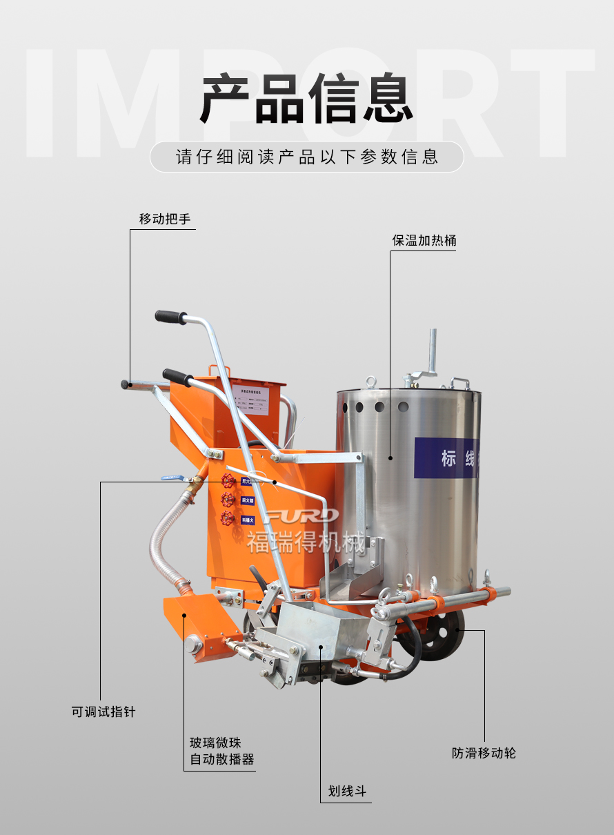 應用于道路、高速公路、停車場、廣場和跑道的在平整地面上劃出不同約速、指引和警示等規則限制標志的路面施工機械。