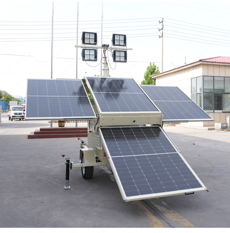 我們開發了一種新產品,叫做太陽能光塔,它的設計理念是節能環保。它可以長時間部署在偏遠地區,并由太陽能自行供電。它通過可調節的太陽能電池板自動充電,運行干凈,安靜,高效。