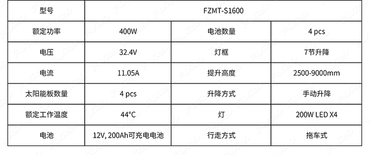 FZMT-S1600  9米可移動升降太陽能燈塔